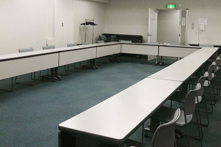 常設備品: (無料)机14台/椅子28脚/ホワイトボード(正面固定)/スクリーン(正面天吊)/演台/花台/傘立て1台/ハンガーラック1台(ハンガー付き15本) ※天吊りスクリーンを固定ホワイトボードの前に下ろすタイプのため同時使用はできません ●延長コード常備2本【追加が必要な場合は、必ず備考欄にご記入ください。当日追加は有料となります】● |