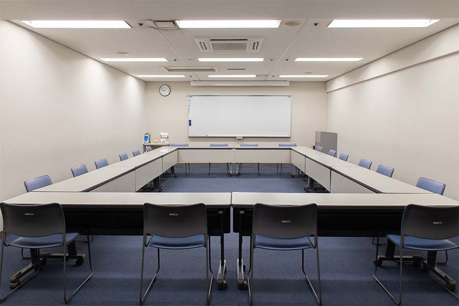 常設備品: (無料)机14台/椅子28脚/ホワイトボード(正面固定)/スクリーン(正面天吊)/演台/花台/傘立て1台/ハンガーラック1台(ハンガー付き15本) ※天吊りスクリーンを固定ホワイトボードの前に下ろすタイプのため同時使用はできません ●延長コード常備2本【追加が必要な場合は、必ず備考欄にご記入ください。当日追加は有料となります】● |