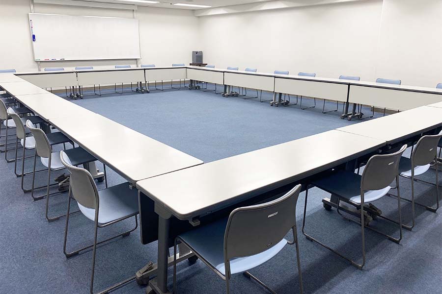 常設備品: (無料)机20台/椅子40脚/ホワイトボード(正面固定)/スクリーン(正面天吊)/演台/花台/傘立て1台/ハンガーラック1台(ハンガー付き25本) ※天吊りスクリーンを固定ホワイトボードの前に下ろすタイプのため同時使用はできません ●延長コード常備2本【追加が必要な場合は、必ず備考欄にご記入ください。当日追加は有料となります】● |